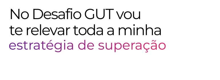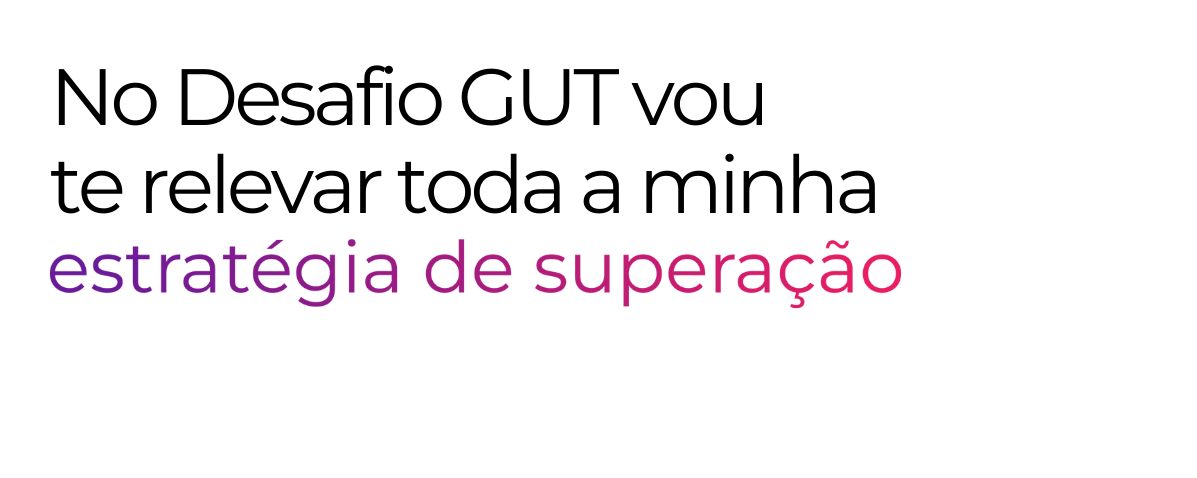 No Desafio GUT, vou te mostrar o passo a passo para finalmente parar com os pensamentos obsessivos, deixar de se importar com o que ele/ela faz ou deixa de fazer e recuperar a sua força emocional. Você vai entender, com clareza, por que ainda se sente travada (o) e o que fazer para sair disso.