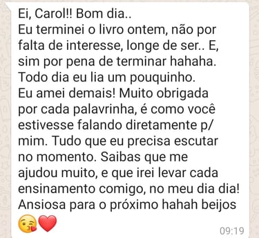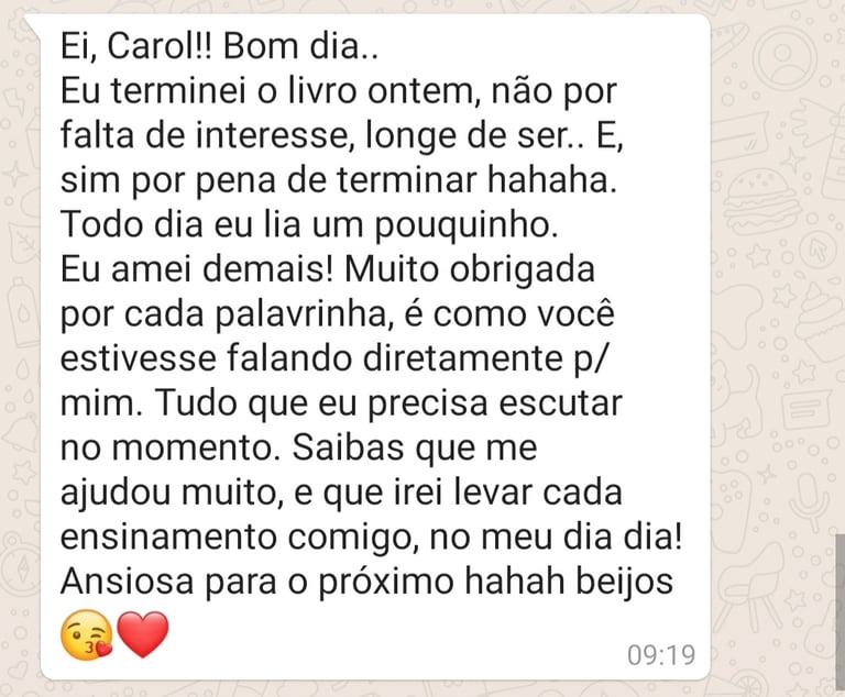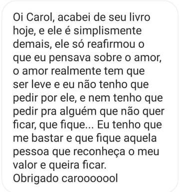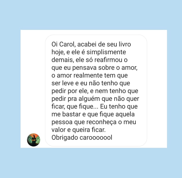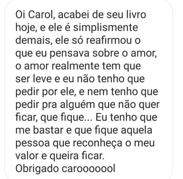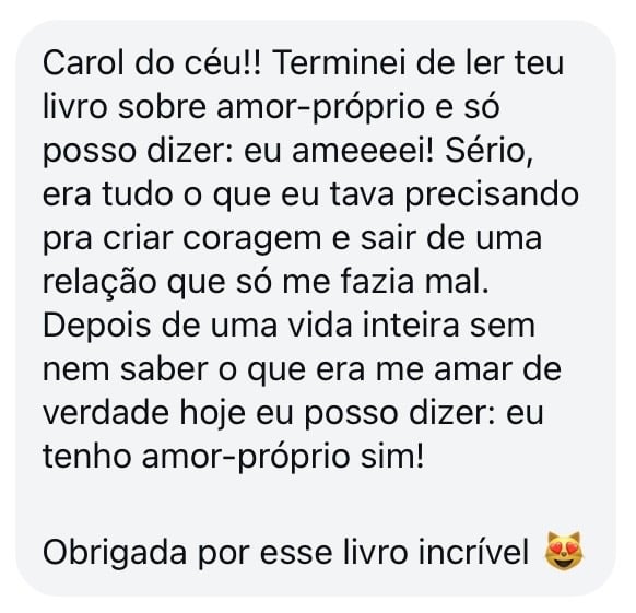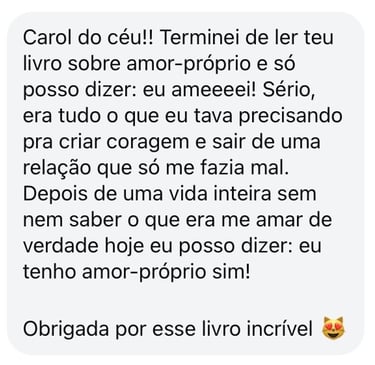 Eu sou a Carolina Monsi. Sou psicanalista, especialista em términos e escritora. Por meio dos meus textos, livros e atendimentos ajudo mais de 600 mil pessoas a superarem decepções amorosas, viverem relações saudáveis e se amarem mais.