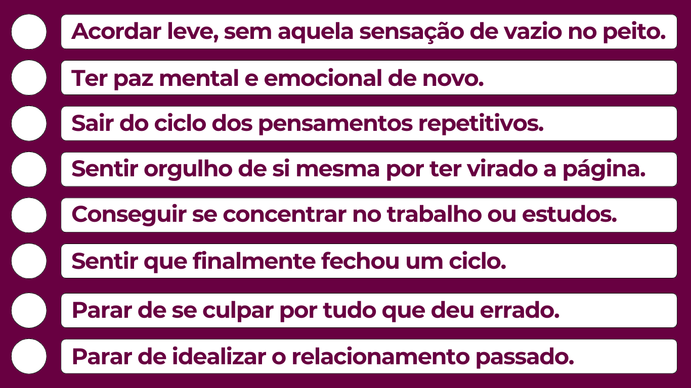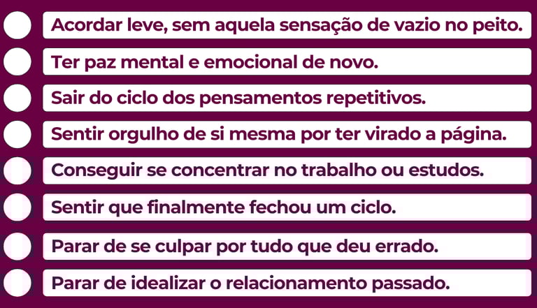Você terá acesso ao Plano completo para deixar seu ex no passado e dar um basta no seu sofrimento.