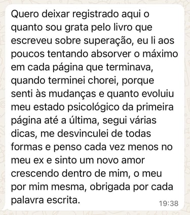Não estou falando de ficar com outra pessoa para superar ou sair para baladas. Estou falando de um método que vai te mostrar como sair do fundo do poço e recomeçar a sua vida, mesmo sem aquela pessoa.