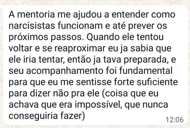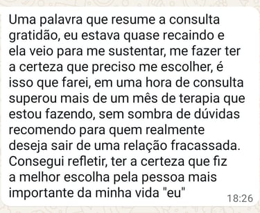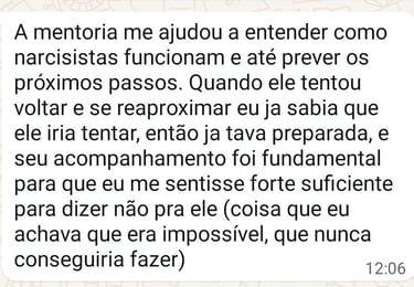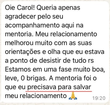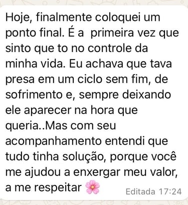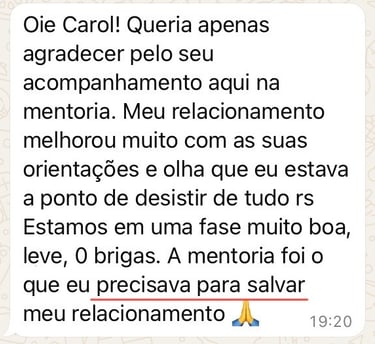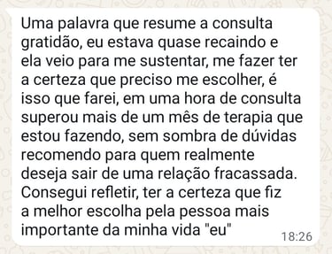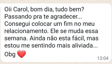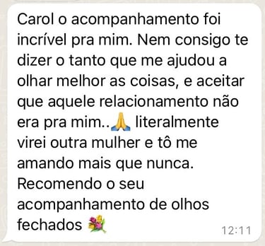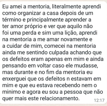 Escolhi esse caminho porque eu era uma pessoa que sempre sofria por amor. Seja por aceitar menos do que merecia, seja por estar passando por um término doloroso. Mas, consegui romper esses padrões e hoje vivo um casamento maravilhoso.