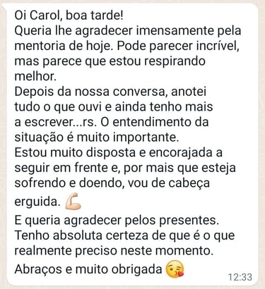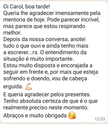 Minha forma de trabalhar é próxima e participativa. Estarei ao seu lado para te ajudar a compreender o que está acontecendo e também para encontrar soluções.
